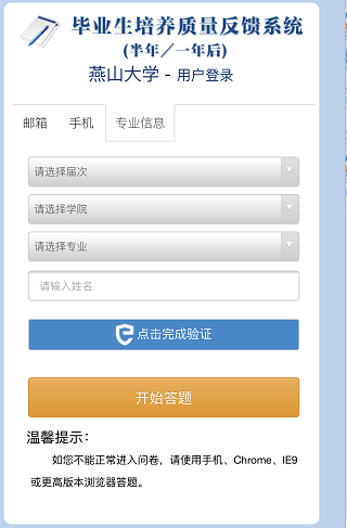 使用学校信息提交中的届次+院系+专业+姓名验证,点击完成验证后再点击开始答题,可直接跳转到答题页面参与答题。