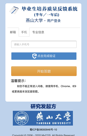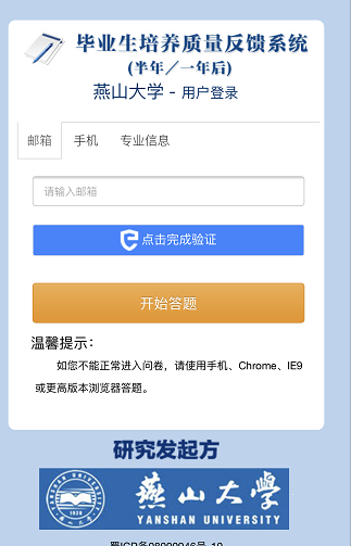 评价方式:问卷采用在线答题方式进行,答题入口将通过邮件发送给各位毕业生。也可通过微信扫描下方答题二维码,通过验证后参与答题。