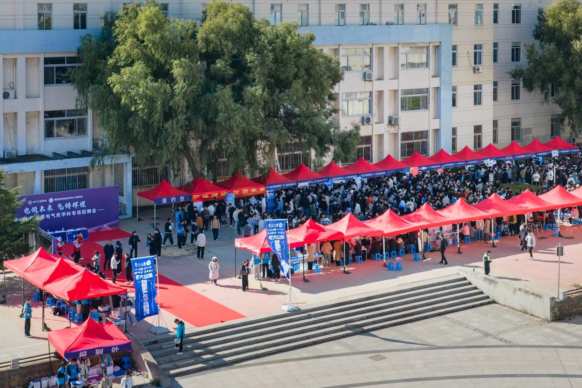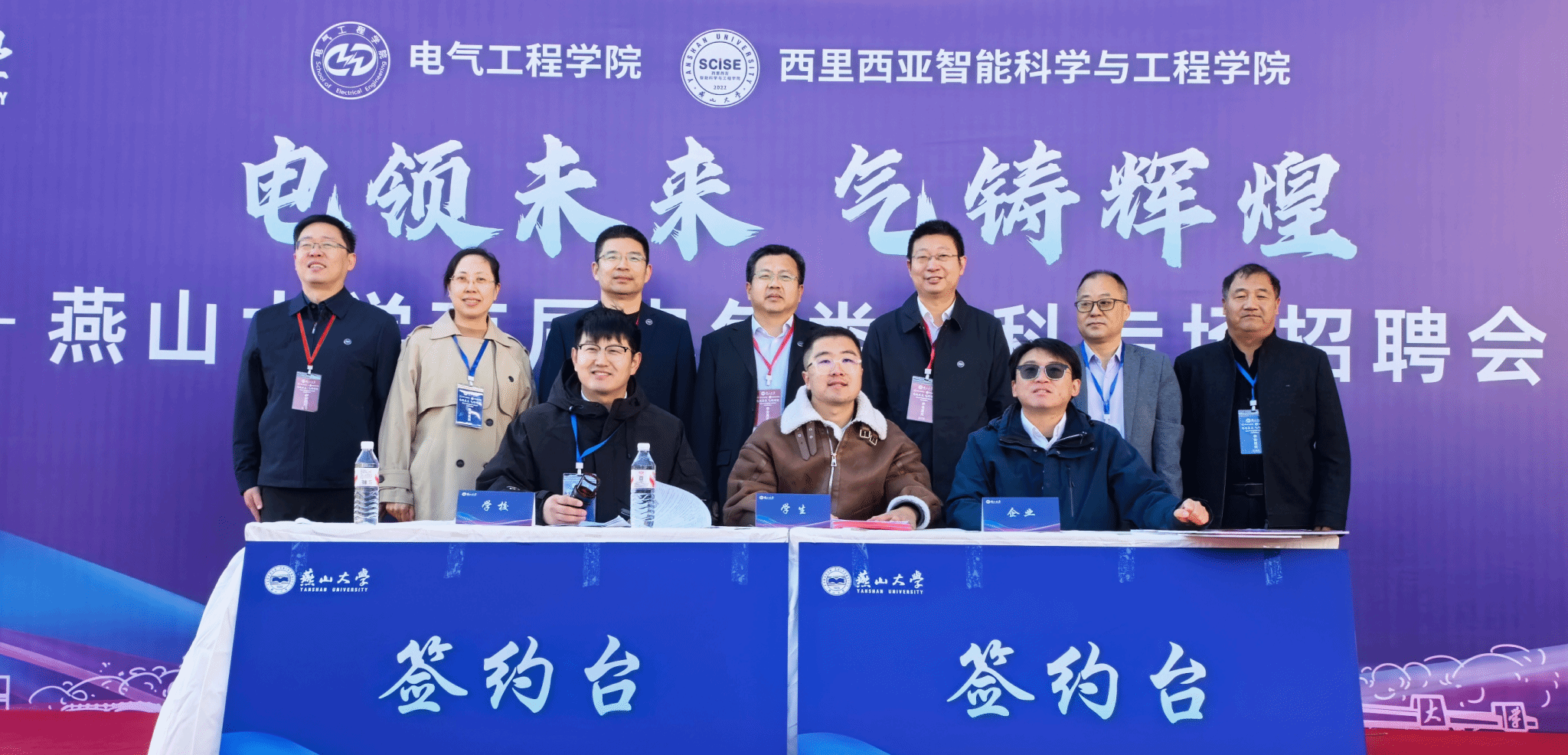 【新闻中心讯】为深入贯彻落实党中央、国务院关于促进高校毕业生就业的决策部署,积极响应学校“一院一场”工作要求,10月18日,电气工程学院、西里西亚智能科学与工程学院“电领未来 气铸辉煌—燕山大学首届电气类学科专场招聘会”在西校区电气A楼广场举行。校党委副书记蔡星周,党委常委、副校长华长春,党委常委、副校长王跃华,招生就业处及学院相关领导参加招聘会。