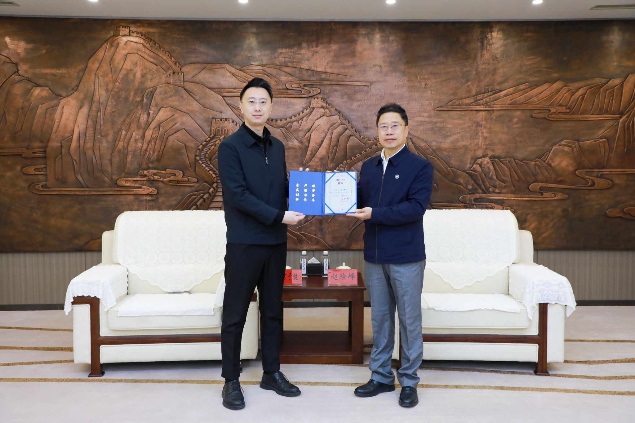 【新闻中心讯】10月23日上午,燕山大学在世纪楼2106接待室举行仪式,正式聘任科学出版社副总编辑上官子健为学校新质生产力研究中心研究员。校党委书记赵险峰出席仪式并为上官子健颁发聘书。学校办公室、社会科学处、经济管理学院、图书馆等相关单位负责人参加了仪式。