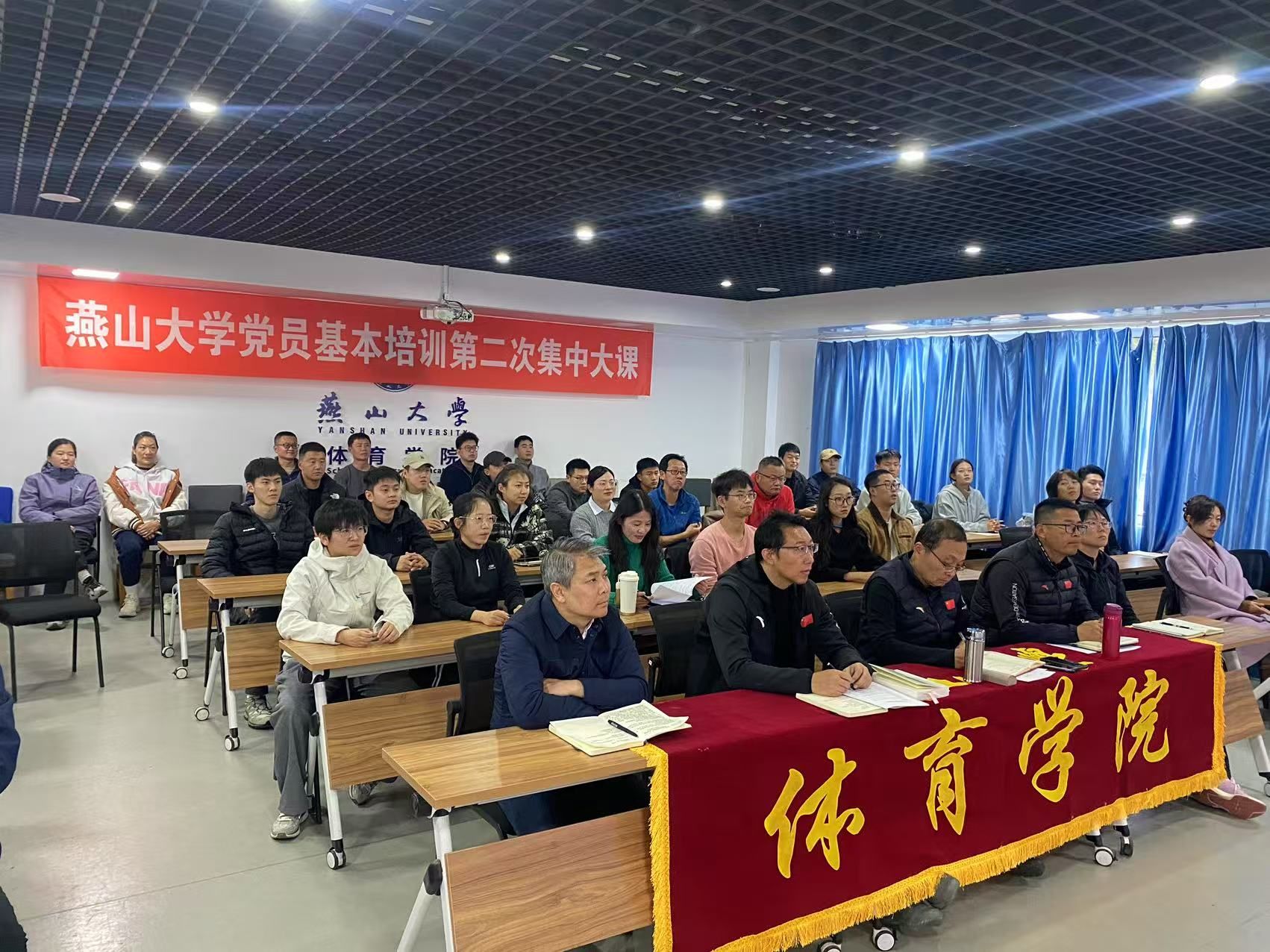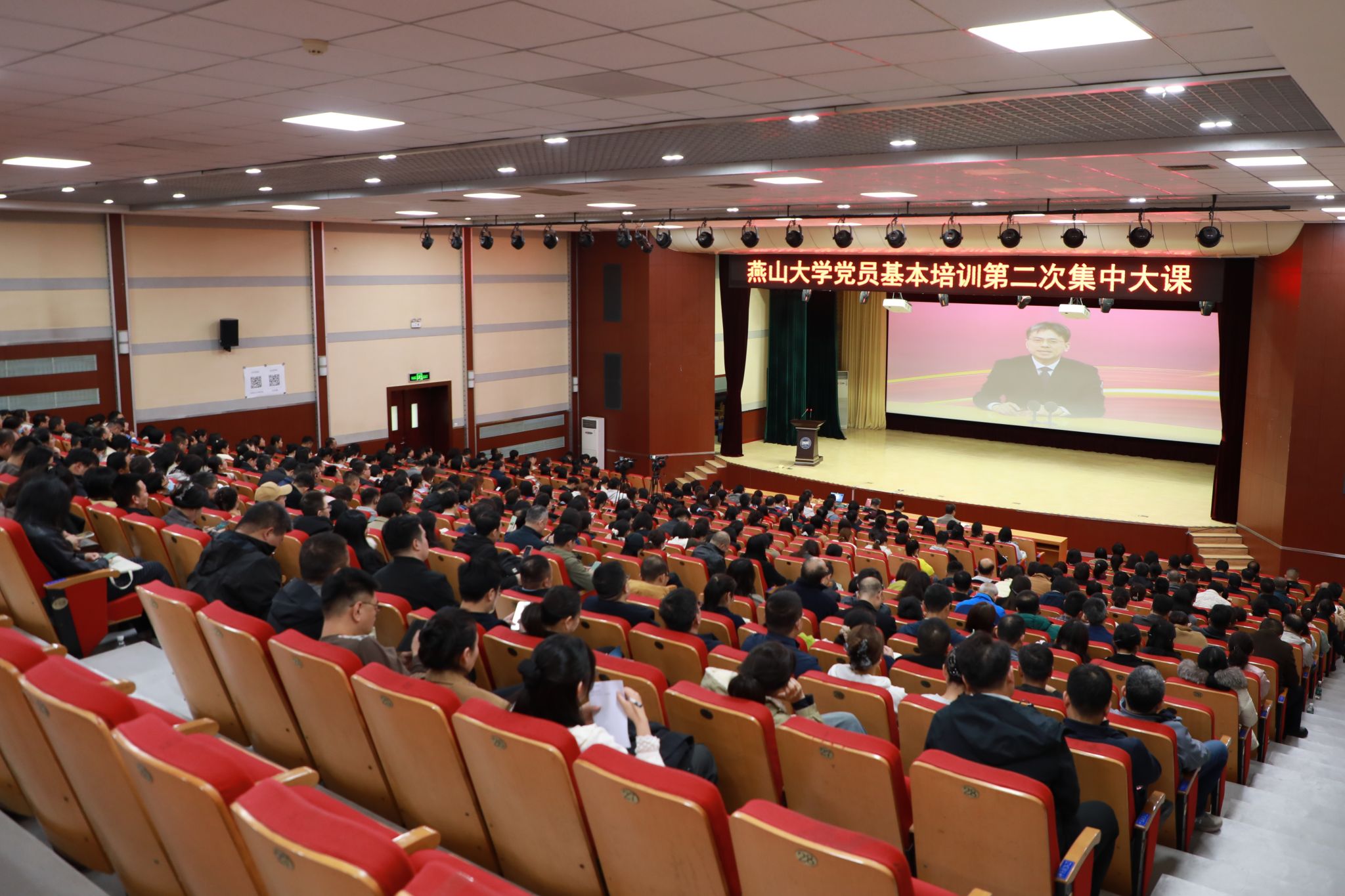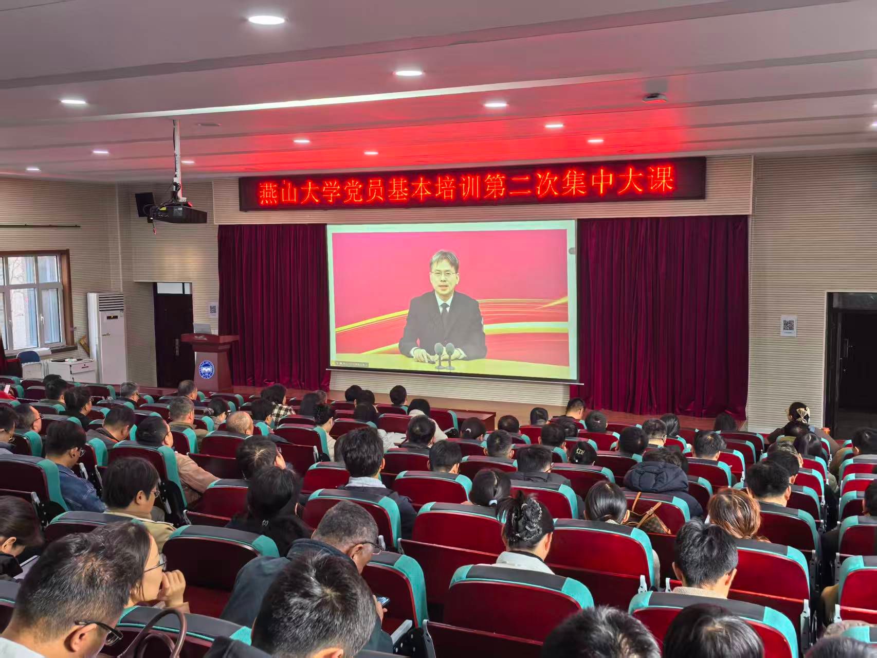 【新闻中心讯】10月23日下午,燕山大学举办2025年党员基本培训第二次集中大课,全校6500余名师生党员通过线上线下52个会场集体学习中共中央党校(国家行政学院)教育长张忠军《深入学习贯彻习近平总书记关于党性重要论述,加强党性修养》专题视频辅导。本次集中大课由学校党委书记赵险峰主持。