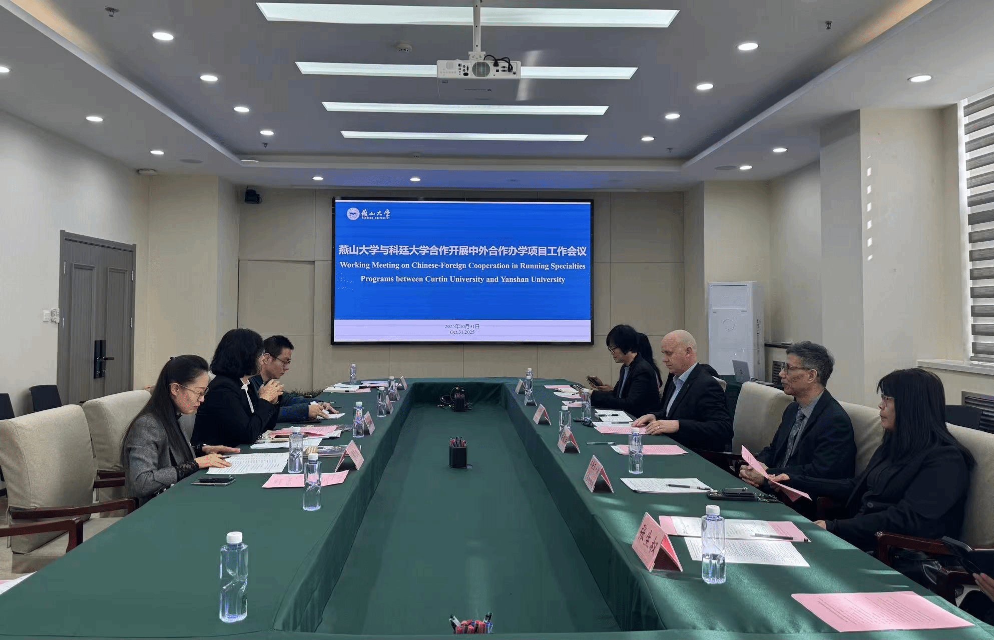 【新闻中心讯】10月30日至31日,澳大利亚科廷大学协理副校长、科学与工程学院负责人克里斯·拉瓦森(Chris Rwason)教授率代表团一行6人访问燕山大学。燕山大学校长王慧远会见了代表团一行,国际合作处、国际教育学院等单位相关负责人陪同会见。