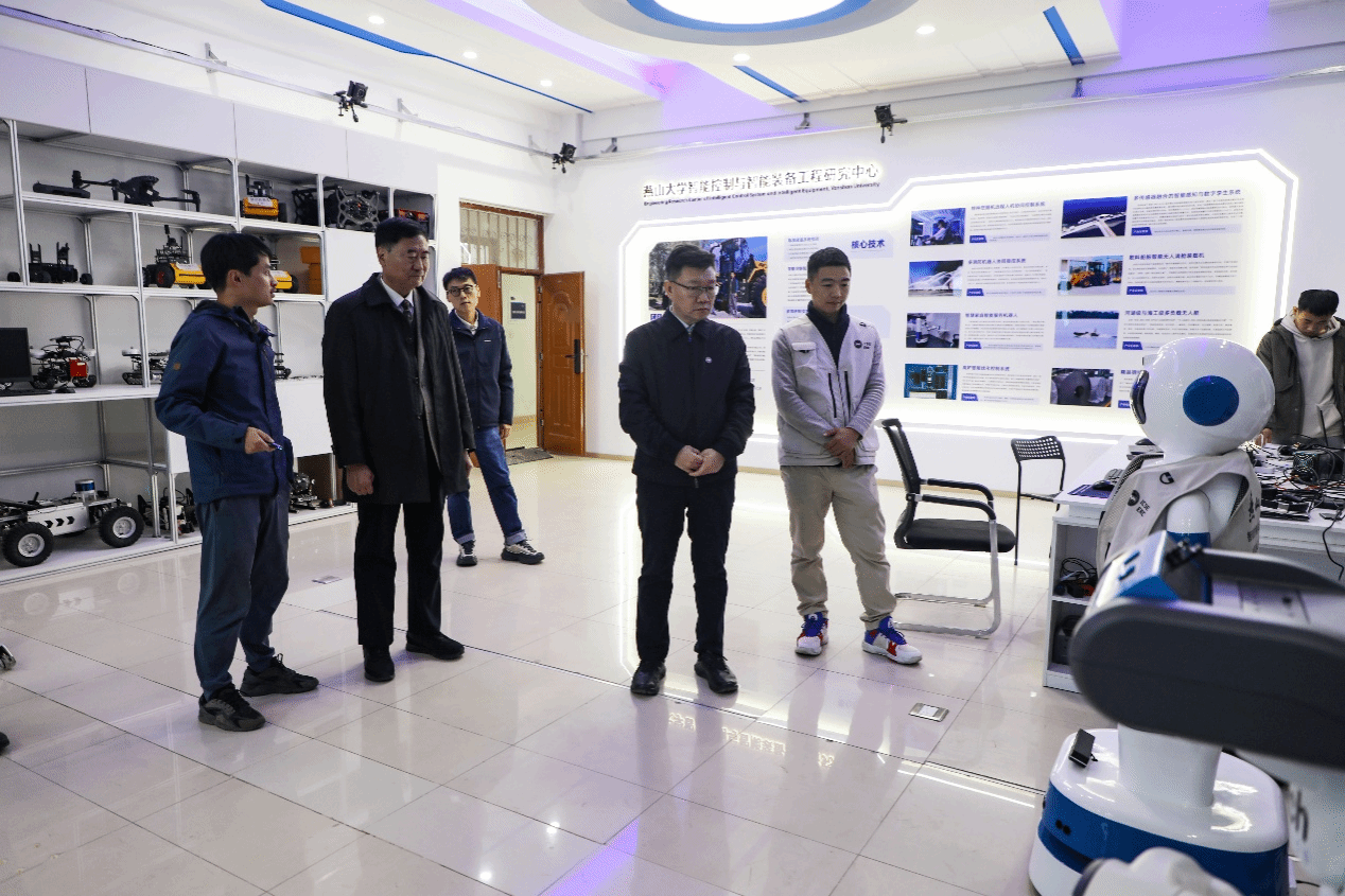 座谈会后,李宁院士及团队专家实地参观了理学院CIFLog软件在国产操作系统下的课堂应用,以及电气工程学院的智能控制系统与智能装备教育部工程研究中心的成果展示,对学校学科交叉融合及产学研用成果给予高度评价。