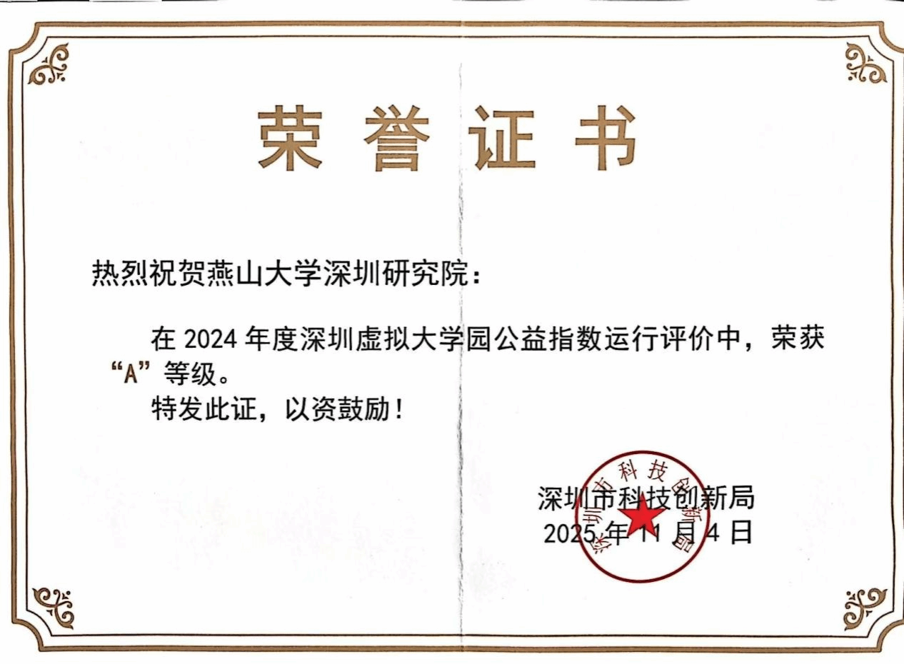 深圳虚拟大学园联席会议已连续举办26届,现已成为推动产学研协同创新的重要平台。会上举行了2024年度公益指数运行评价A级机构颁奖仪式,燕山大学深圳研究院获奖。未来,燕山大学深圳研究院将以此为依托,为大湾区高质量发展注入更多“燕大力量”。(编辑 魏欣宇)