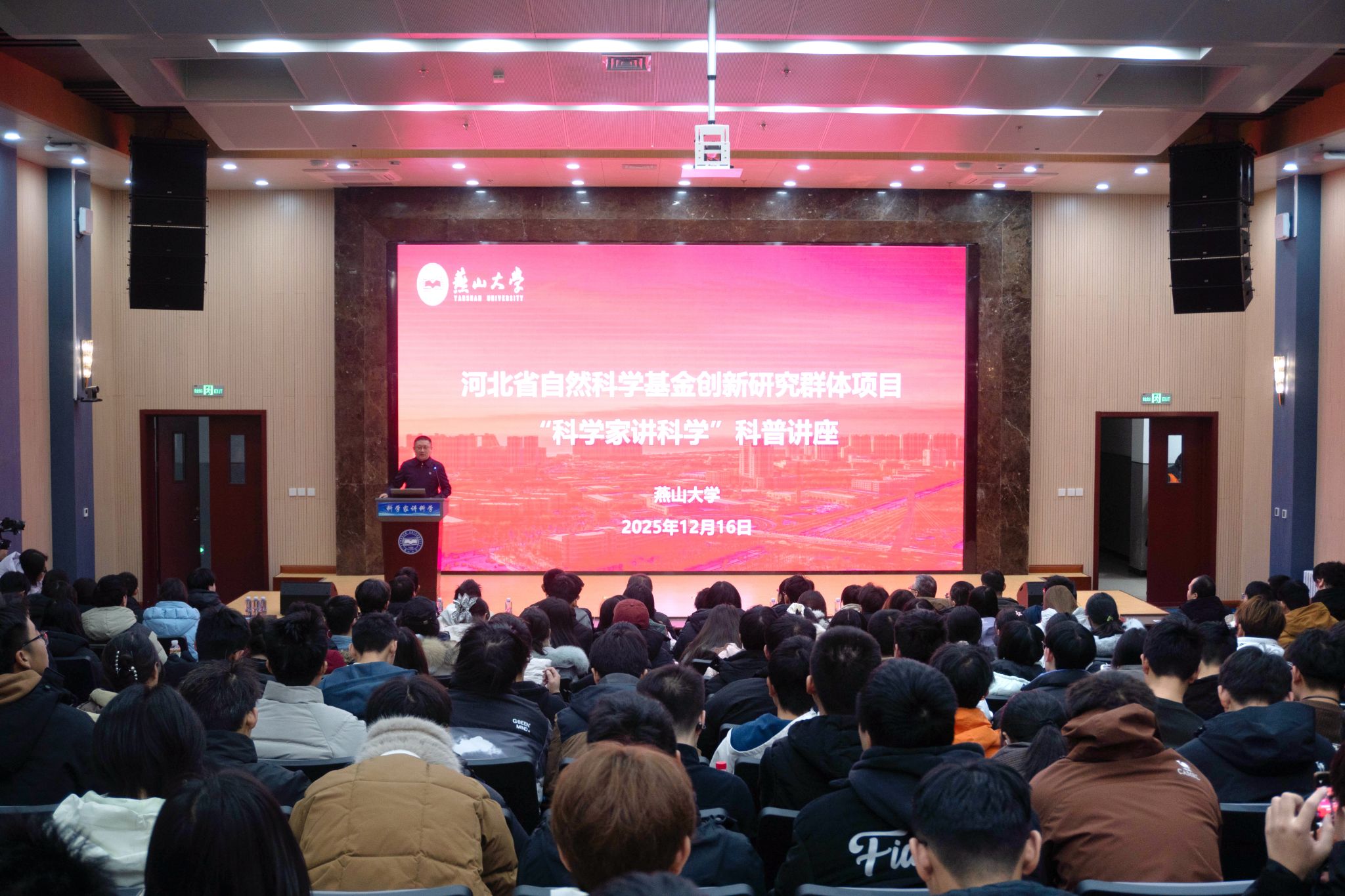 【新闻中心讯】12月16日下午,由河北省科技厅指导、燕山大学主办的2025年度“科学家讲科学”科普讲座活动在燕山大学会议中心多功能报告厅成功举行。本次活动依托河北省自然科学基金创新研究群体项目开展,旨在推动科研成果科普化,弘扬科学家精神,营造崇尚科学的校园文化氛围。活动吸引了240余名师生积极参与。