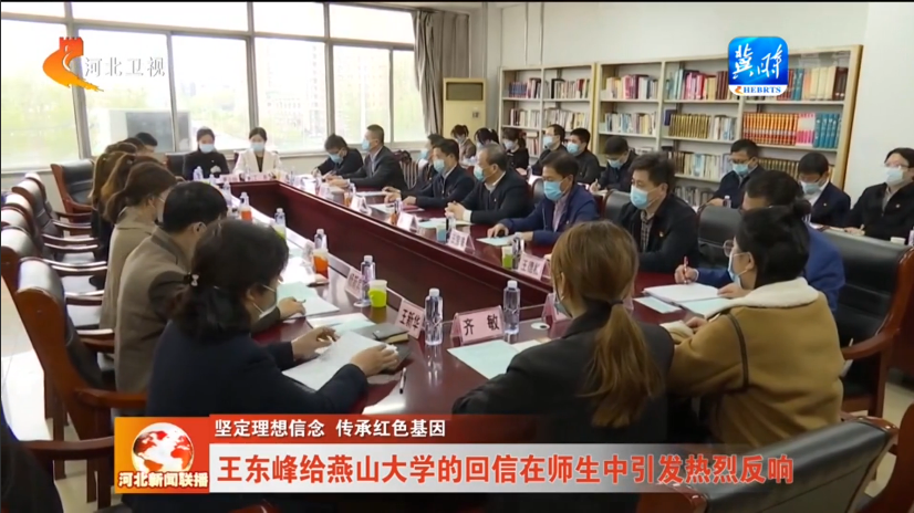 4月22日,燕山大学召开学习贯彻王东峰书记回信精神师生座谈会,向马克思主义学院传达了回信内容,并在党委理论学习中心组学习会和党委常委会上学习传达了王东峰书记的回信精神。