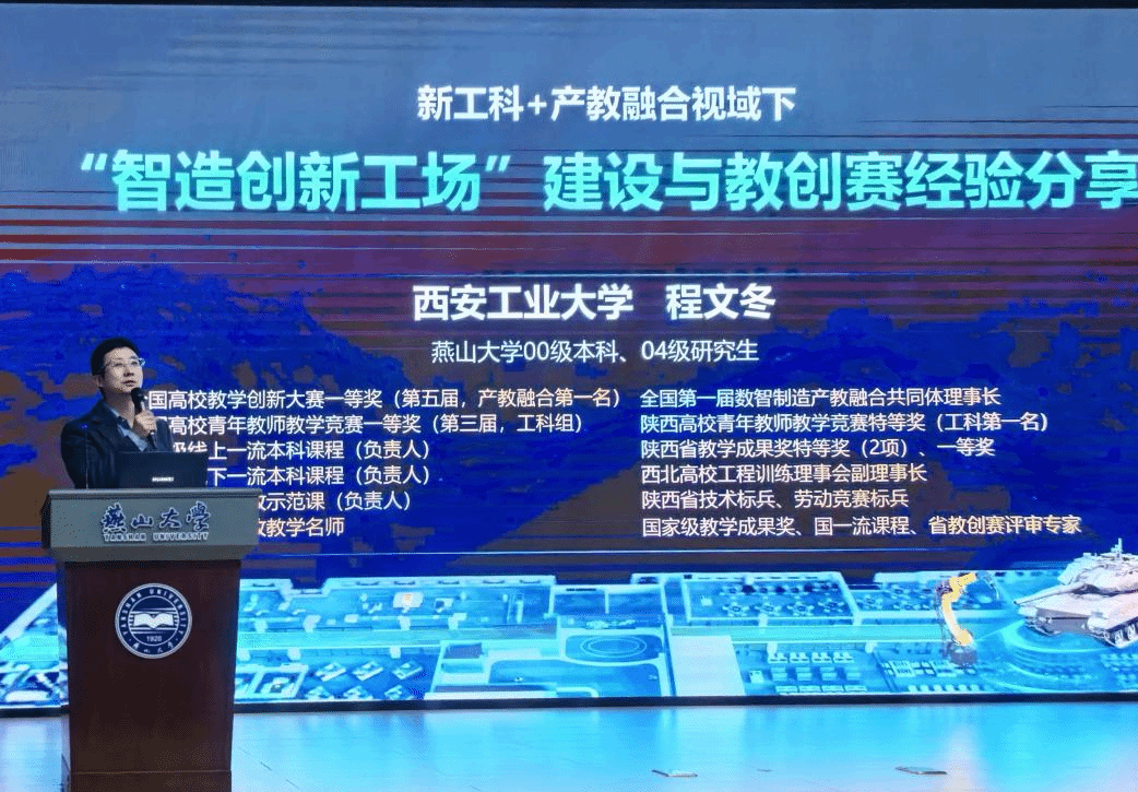 程文冬教授是全国第五届高校教师教学创新大赛一等奖(产教融合赛道第一名)获得者,同时担任国家级线上、线下一流本科课程及国家级课程思政示范课负责人,在产教融合育人、教学创新实践等领域成果丰硕、经验深厚。报告中,他结合西安工业大学“智造创新工场”的建设实践,系统拆解了新工科背景下工程教育的核心矛盾与破解路径。