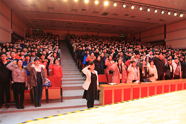 报告会在慷慨激昂的国歌声中拉开序幕。黄晟致辞,他指出,党的十九大召开以来,我校全体师生积极响应中央号召,在学懂弄通做实上狠下功夫,学校掀起了学习党的十九大精神的热潮。他希望全体师生用习近平新时代中国特色社会主义思想武装头脑、指导实践,全面学习、准确理解、科学掌握其深刻内涵;希望全体辅导员立足岗位,扎实做好学生工作;希望同学们努力学习,争取获得更大成绩。最后,黄校长祝全体老师和同学们度过一个愉快、平安的假期。随后,信息科学与工程学院辅导员纪淳带领全体党员重温入党誓词。铿锵有力的誓词,彰显了我校党员师生不忘初心、砥砺前行的决心,增加了全体党员的使命感和责任感。