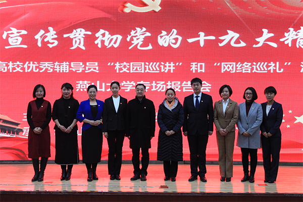 7位辅导员从不同的角度解读了党的十九大精神,展示了我校学工队伍不忘初心跟党走的决心和撸起袖子加油干的意志。报告中的个人经历、身边榜样、燕大故事让在场师生感同身受,自信心和自豪感油然而生。