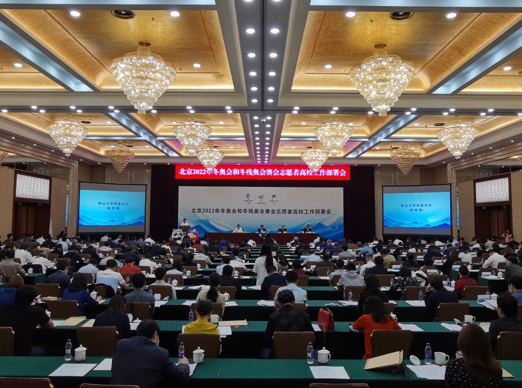 【新闻中心讯】9月27日,北京2022年冬奥会和冬残奥会赛会志愿者高校工作部署会在北京会议中心召开,北京市委常委、教工委书记王宁、北京市副市长、北京冬奥组委执行副主席张建东,河北省副省长时清霜及北京、河北两地相关工作负责人出席了会议,会议由北京市委教育工委常务副书记郑吉春主持。我校党委书记赵险峰、党委副书记黄晟、团委书记薛传佳等参加了会议。赵险峰代表河北高校在会上发言。