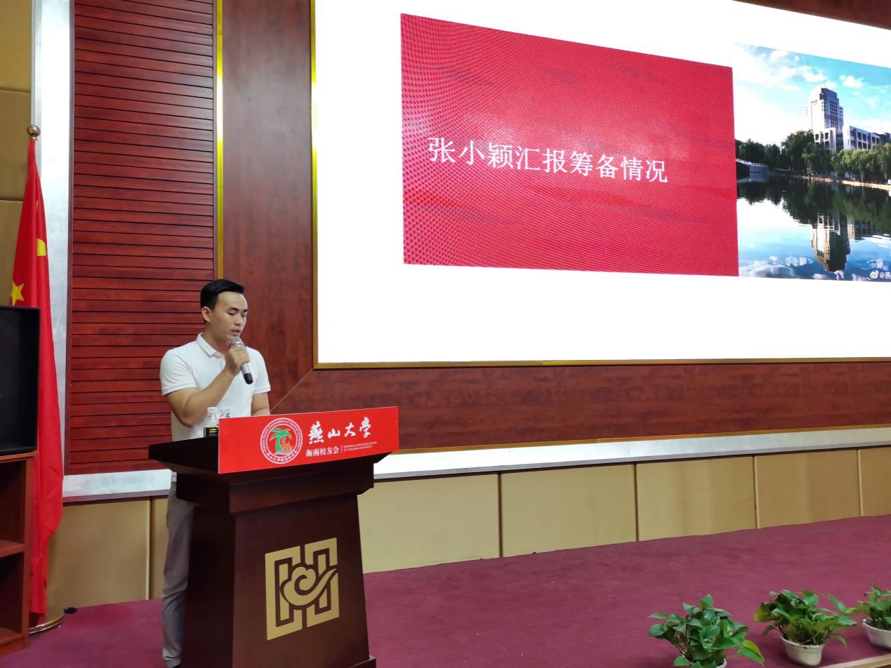 12级软件工程专业校友、乐东福田绿色农业发展有限公司生产部经理、燕山大学(东重)海南校友会拟任秘书长张小颖汇报了大会筹备情况、服务宗旨并解读了会徽的含义。全体与会代表全票表决通过了《燕山大学(东重)海南校友会章程》草案和第一届理事会名单。
