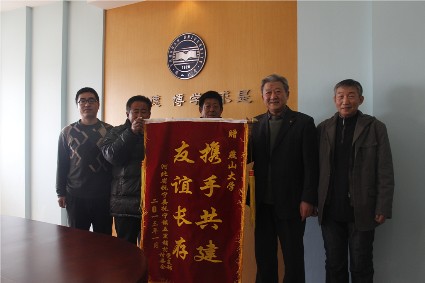 五里铺村民为我校送来“携手共建 友谊长存”锦旗(蔡常山 摄)