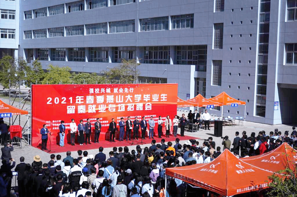 为进一步贯彻落实党的十九届五中全会精神,推进“学党史、悟思想、办实事、开新局”走向深入,促进毕业生更加充分更高质量就业,5月9日上午,燕山大学隆重举办2021年春季毕业生留秦就业专场招聘会,来自秦皇岛市及下辖六区三县各行业的80余家重点企事业单位齐聚燕园招贤纳才,共提供2000余个就业岗位。