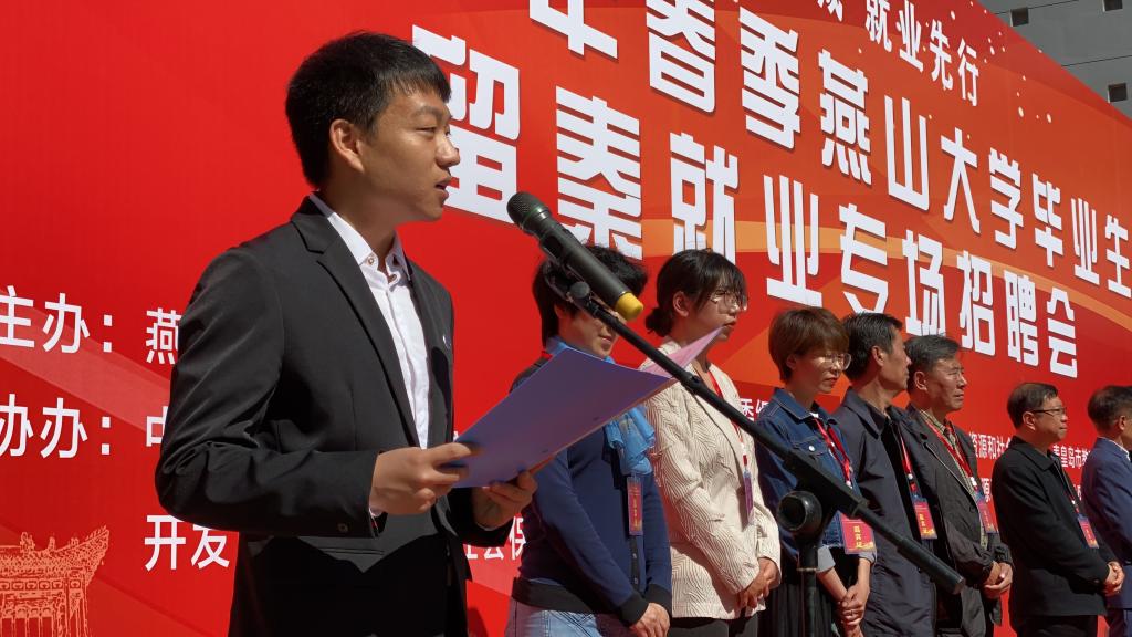 秦皇岛中秦兴龙投资控股有限公司人力资源部经理王维行和燕山大学机械工程学院机械电子工程专业2021届硕士毕业研究生娄文韬分别作为参会企业代表和留秦就业毕业生代表在启动仪式上发言,表达了驻秦企业对燕山大学人才培养质量和毕业生就业工作的高度认可,展现了新时代燕山大学优秀毕业生的家国情怀和责任担当。