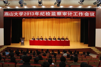 【新闻中心讯】为深入贯彻党的十八大精神,贯彻落实十八届中纪委二次全会、省纪委八届三次全会和河北省教育纪检监察审计会议精神,4月11日下午2:30,我校在西校区大学生活动中心报告厅召开了2013年纪检监察审计工作会议。会议全面总结了我校党风廉政建设和反腐败工作,并对2013年的工作任务进行了全面部署。秦皇岛市纪委副书记杨国春,孟卫东、刘宏民、陈春利、孔令富、谢延安、张景超、赵永生、刘爱民等校领导以及我校全体中层干部和科级干部出席了会议。会议由校长刘宏民主持。
