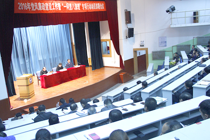 校纪委书记刘爱民在报告中从坚持全面从严治党,主体责任持续强化;改进监督执纪方式,把纪律和规矩挺在前面;加强制度建设,强化重点领域监管;加强组织协调,抓好巡视整改与干部选拔任用工作;深化正风肃纪,保持惩治腐败高压态势等五个方面对我校2015年党风廉政建设工作进行了全面总结和回顾。从坚持全面从严治党;强化权力运行制约监督;强化监督执纪问责;坚决查处教职工身边的不正之风和腐败问题四个方面对我校2016年党风廉政建设和反腐败工作进行了重点安排,对我校即将开展的“一问责八清理”专项行动,从重要意义、综合手段、明确要求方面进行了解读、动员和部署。