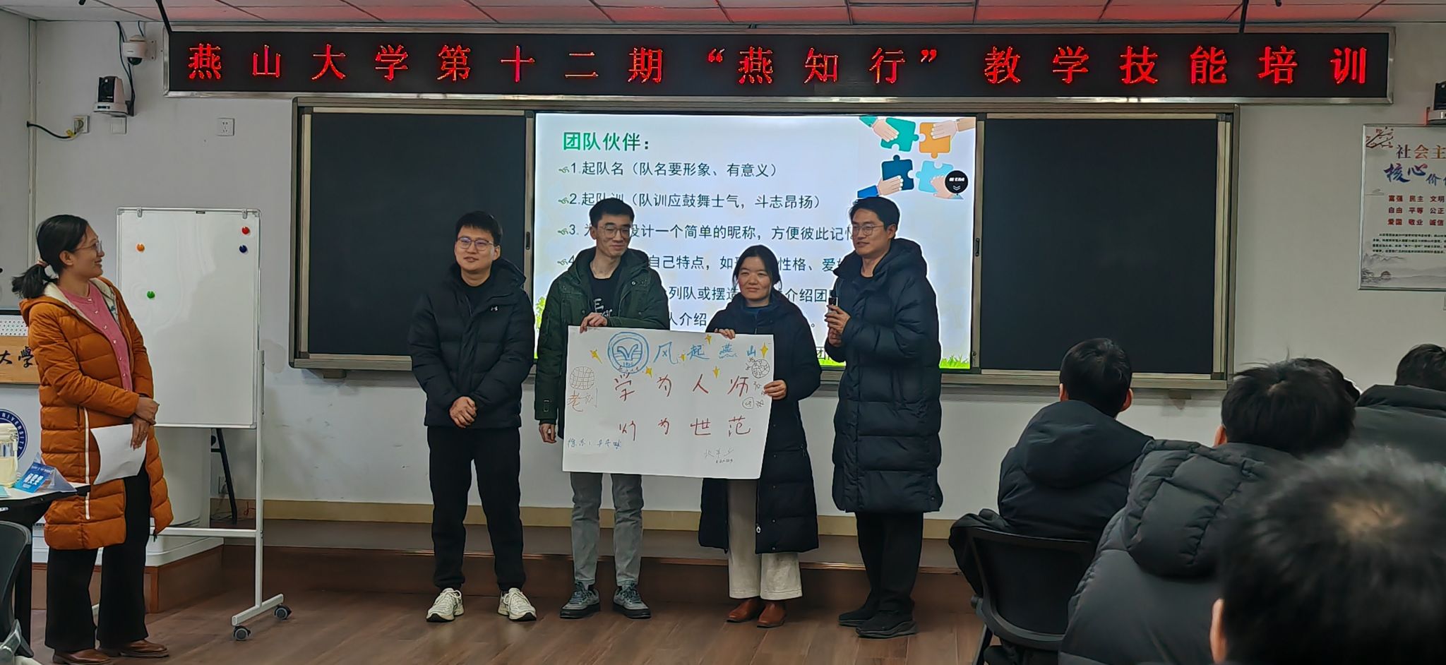 【新闻中心讯】1月10日-12日,燕山大学第十二期“燕知行”教学技能培训活动在东校区第四教学楼113教室顺利开班,来自全校各学院的32名教师齐聚一堂,沉浸式参与本次培训。