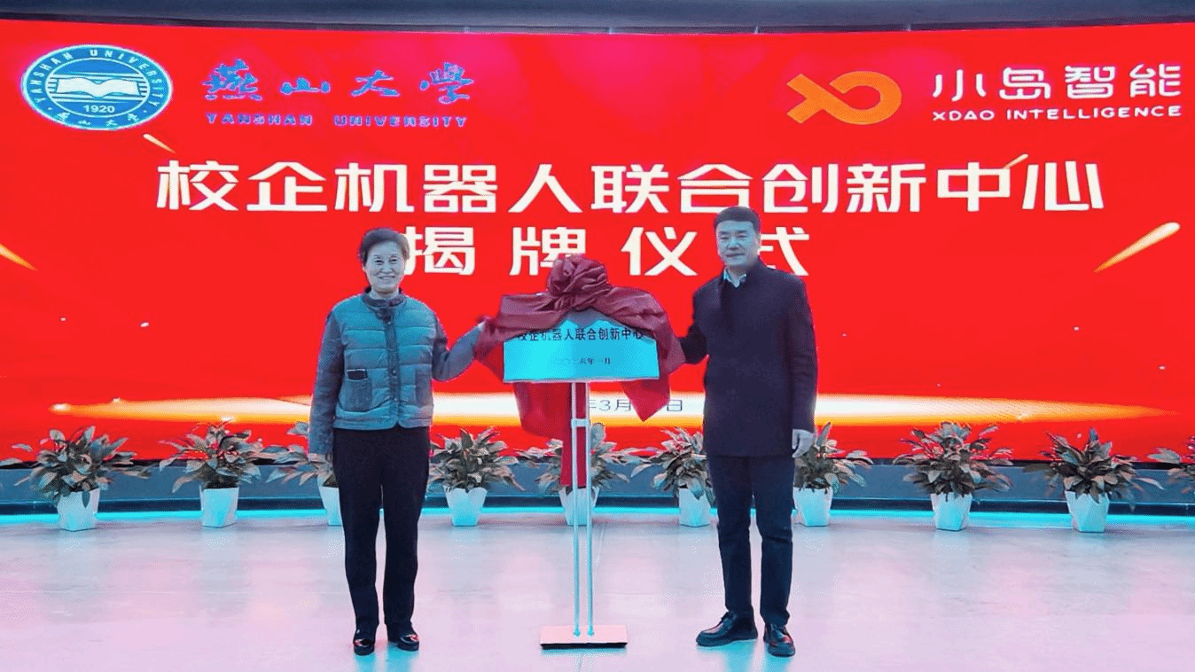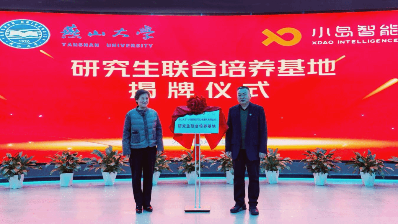 在随后举行的揭牌仪式上,政校企三方代表共同见证了合作平台的正式启动。小岛智能(河北)机器人有限公司董事长那威分别与学校研究生院院长赵庆新、科技产业促进中心主任郝连旺为“燕山大学-小岛智能研究生联合培养基地”及“燕山大学-小岛智能机器人联合创新中心”揭牌,这标志着政校企三方合作进入了以平台为载体的实体化运行、深层次融合的新阶段。
