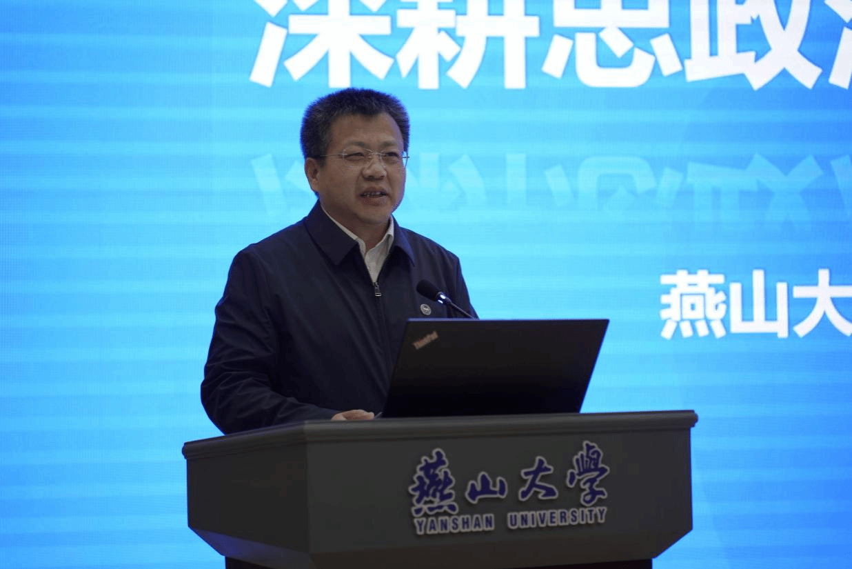 蔡星周结合燕山大学办学实际与思政工作实践,向大会作报告。他讲到学校主动对接国家战略和产业发展需求,构建“多向锻造式”大思政育人体系,让学生在思想淬炼、专业锤炼、实践历练中反复磨砺,提高自身的抗压强度、能力塑性和心理韧性,以应对未来将面临的问题和挑战。