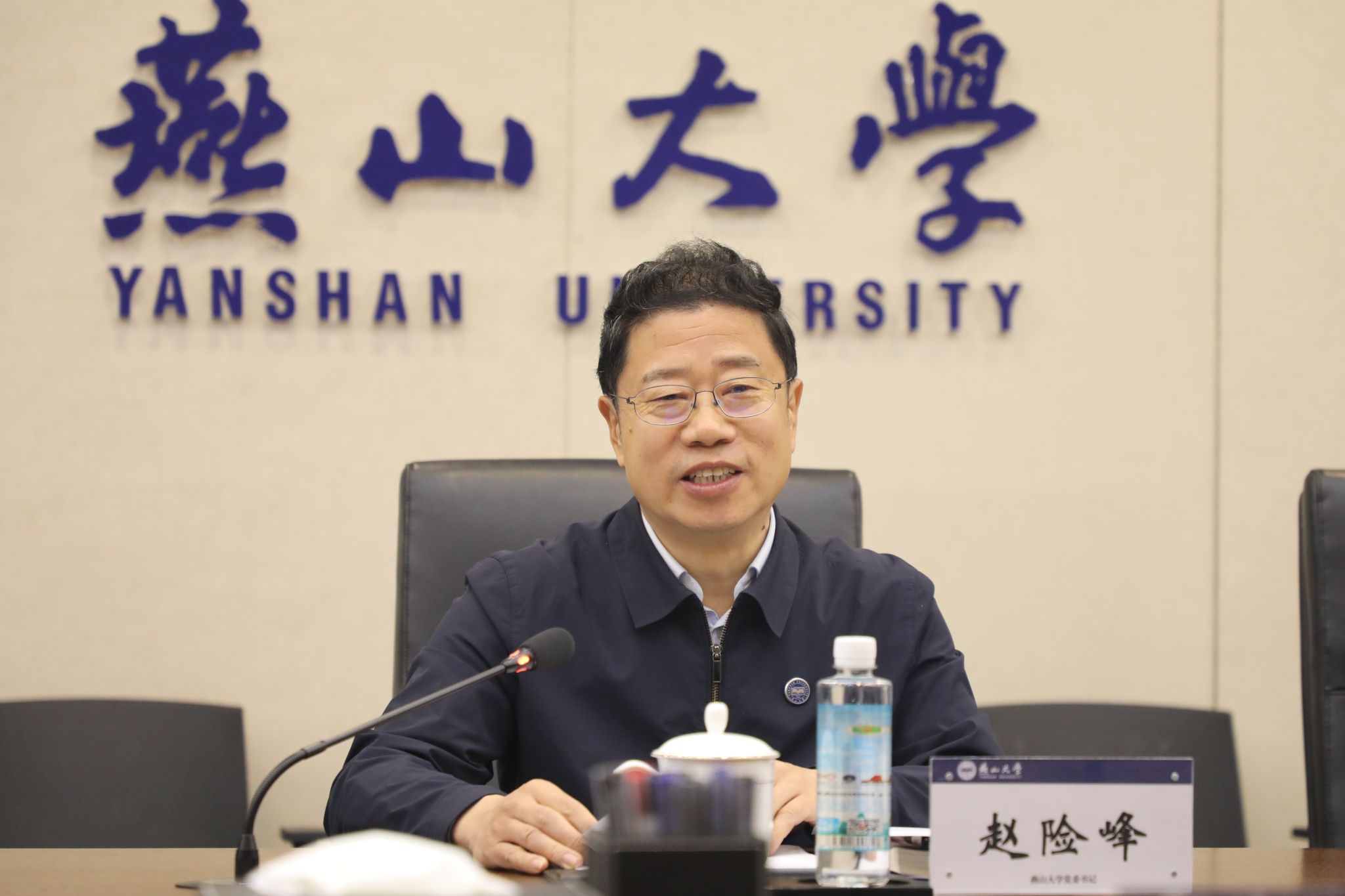 【新闻中心讯】3月20日上午,东北大学秦皇岛分校党委书记张玉宝率队来到燕山大学,就新时代高校党的建设、思想政治教育、师德师风建设、校园治理等工作开展调研交流。座谈会在世纪楼2103室举行,燕山大学党委书记赵险峰,党委副书记蔡星周出席座谈会,会议由蔡星周主持。
