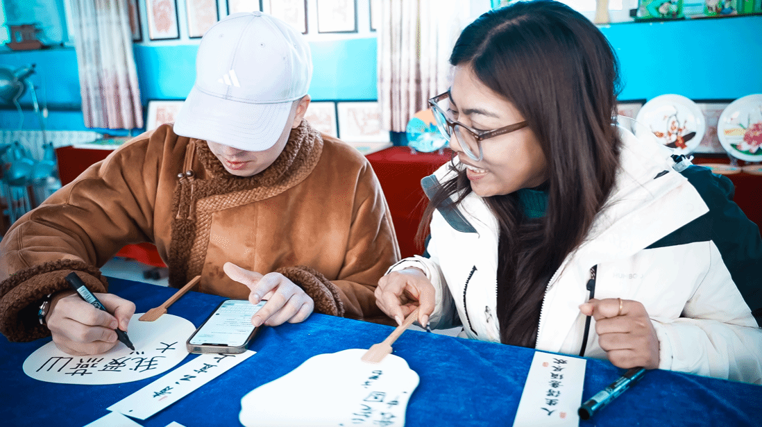 仪式结束后,系列交流活动有序开展。在赵庄子小学,留学生志愿者们参与“雏燕课堂”志愿服务,通过外语趣味教学、异国文化分享、操场小游戏等形式与小学生亲切互动。课后,留学生们还亲身体验中国非遗传统文化——漆扇的制作技艺。