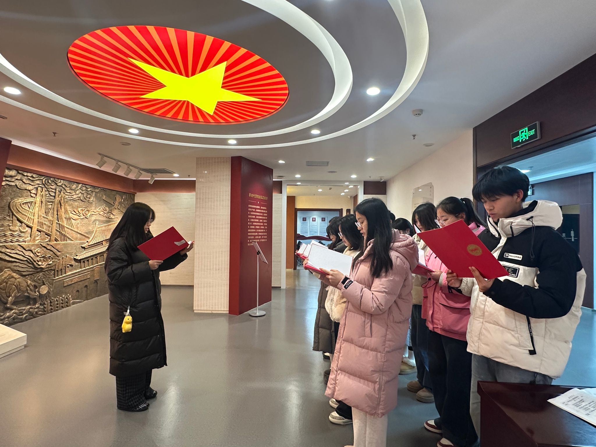 在党员组织生活馆的红色展厅中,一幅幅承载着历史印记的珍贵图文将那段爱国青年为民族危亡奔走呐喊的过往清晰铺展。学生讲习员以生动的讲述,拆解这场爱国运动的历史背景、核心脉络与时代意义,让每一位青年学生在观展体验中,触摸历史脉搏、体悟责任担当。