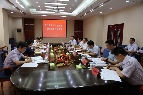 我校在世纪楼第一接待室召开了座谈会,会议由赵险峰主持。杨勇在会上致辞,他对河北省高等教育现状尤其是研究生招生规模进行了简要介绍,并希望教育部多多支持河北省高等教育和燕山大学的发展。赵丁选从学校发展历史、办学成就、平台建设、师资队伍、思政党建、力争进入“双一流”建设高校和未来发展目标等方面向翁铁慧作了详细汇报。